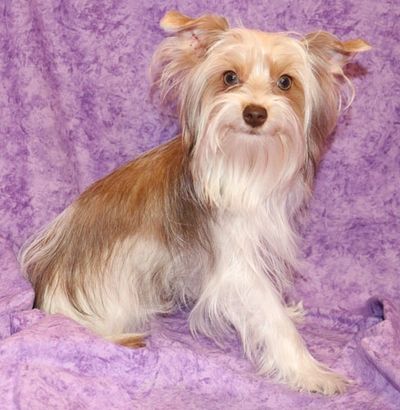 Sassy is our sable parti female Yorkie. She's a sweet and spunky girl. She was born 12/18/23.